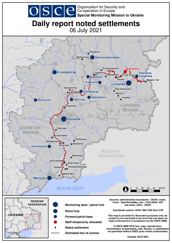 Щоденний звіт № 155/2021, опублікований Спеціальною моніторинговою місією ОБСЄ в Україні (СММ) 6 липня 2021 року