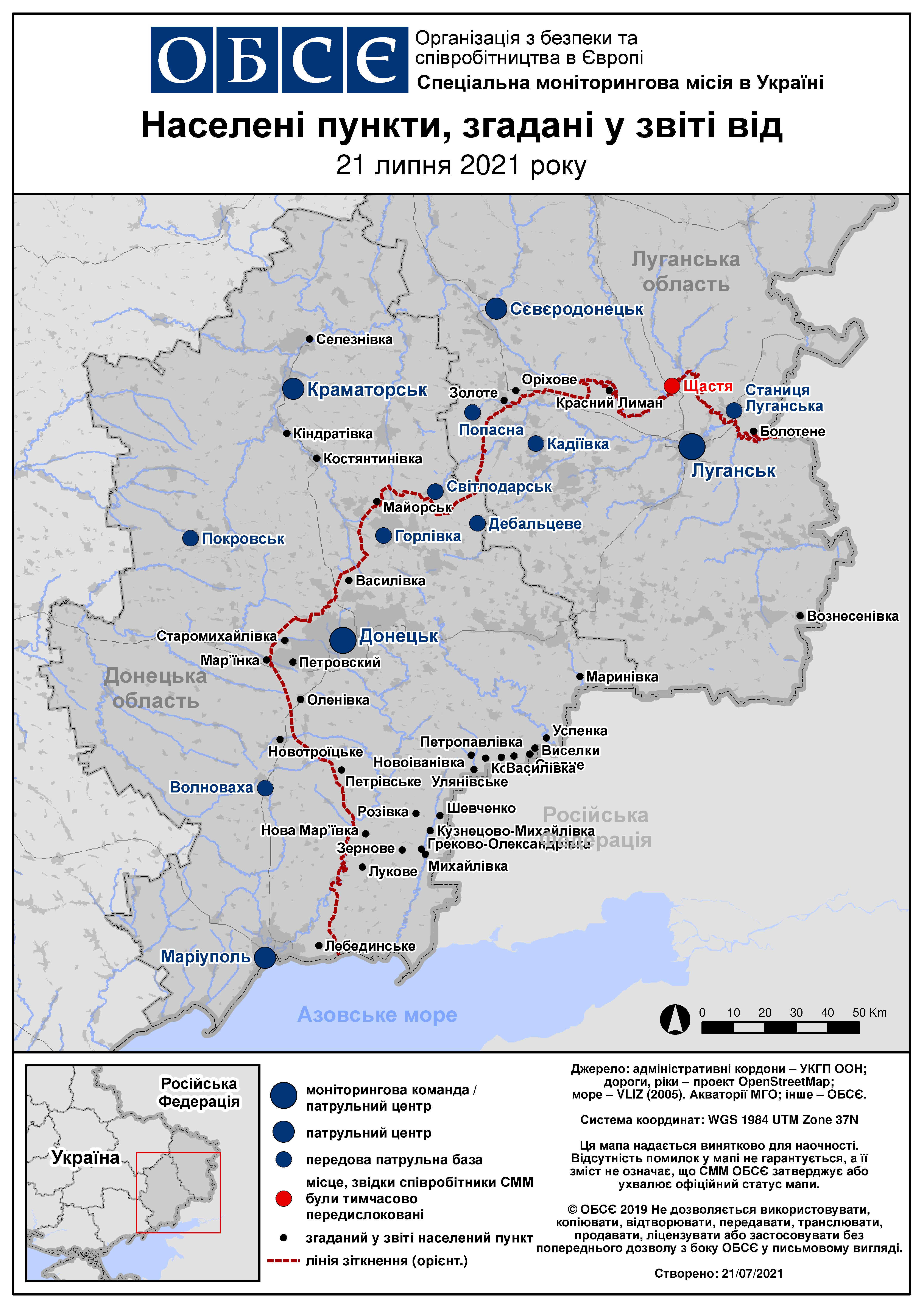 Щоденний звіт № 168/2021, опублікований Спеціальною моніторинговою місією ОБСЄ в Україні (СММ) 21 липня 2021 року