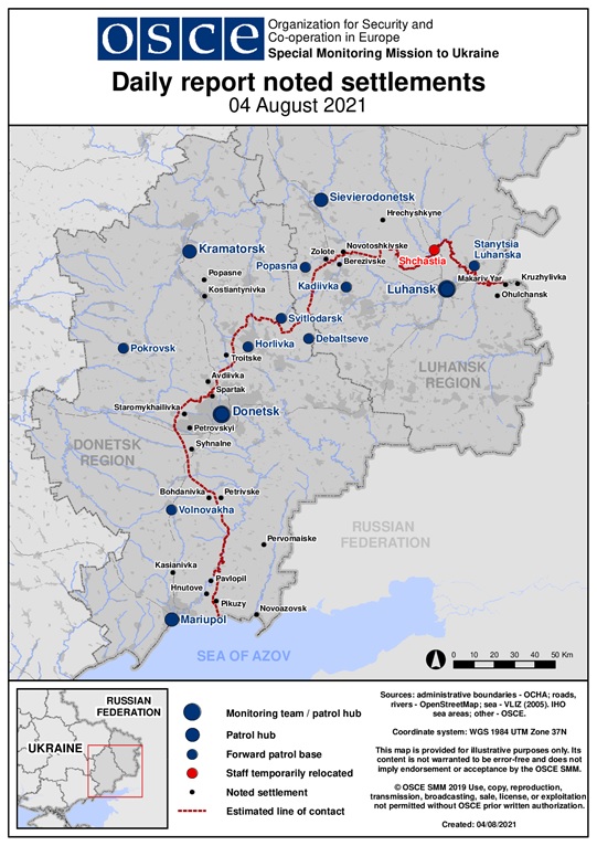 Щоденний звіт № 180/2021, опублікований Спеціальною моніторинговою місією ОБСЄ в Україні (СММ) 4 серпня 2021 року