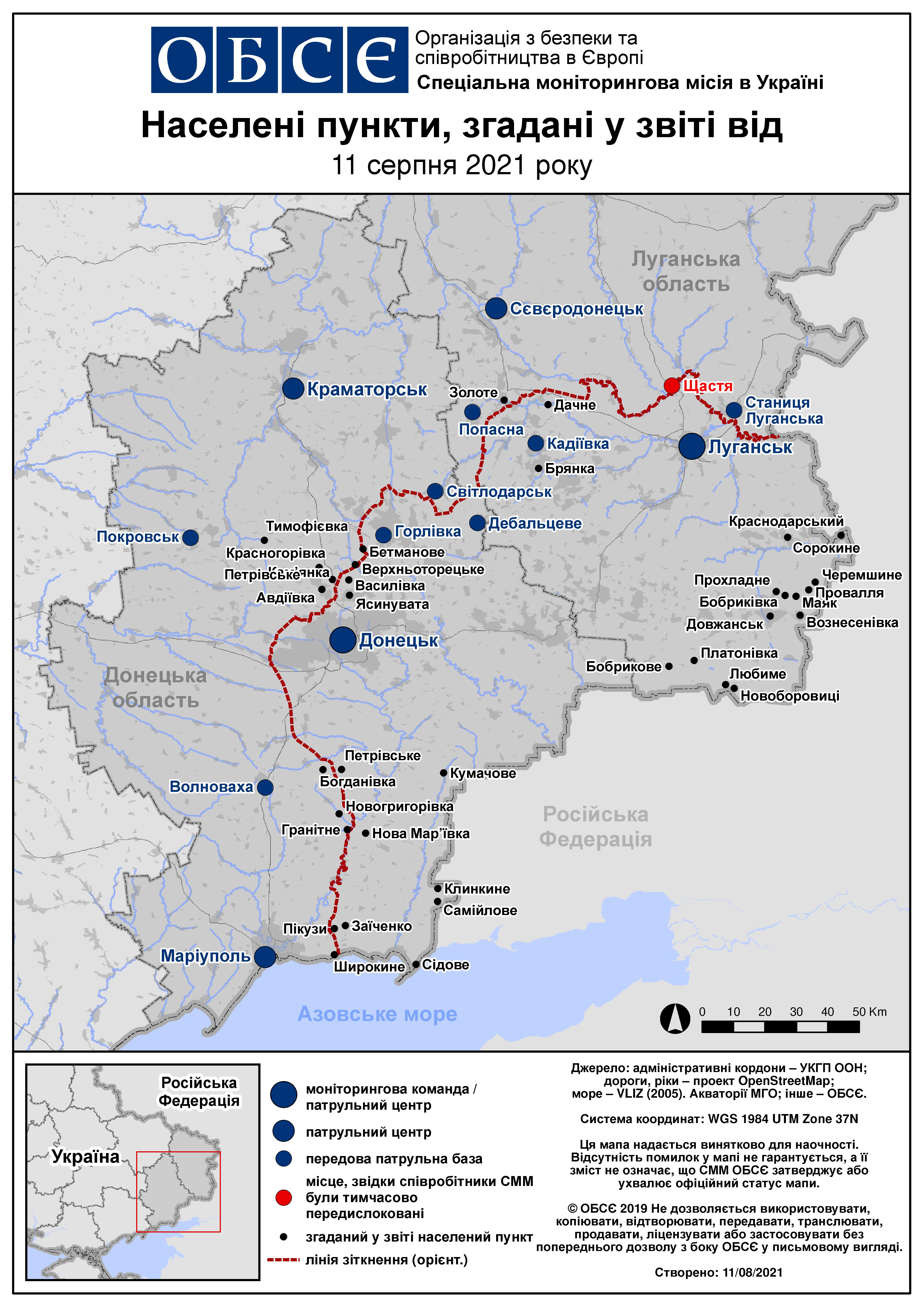Щоденний звіт № 186/2021, опублікований Спеціальною моніторинговою місією ОБСЄ в Україні (СММ) 11 серпня 2021 року