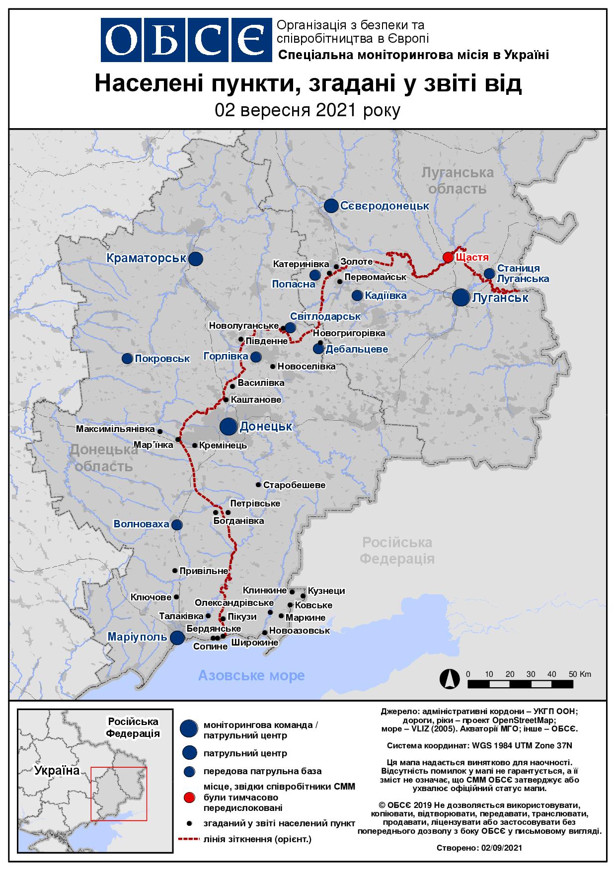 Щоденний звіт № 205/2021, опублікований Спеціальною моніторинговою місією ОБСЄ в Україні (СММ) 2 вересня 2021 року