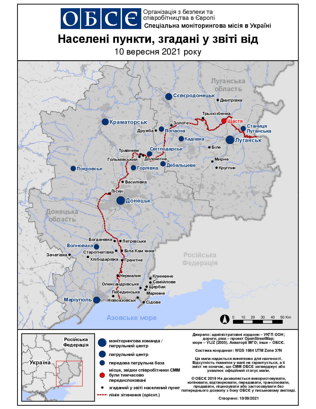 Щоденний звіт № 212/2021, опублікований Спеціальною моніторинговою місією ОБСЄ в Україні (СММ) 10 вересня 2021 року
