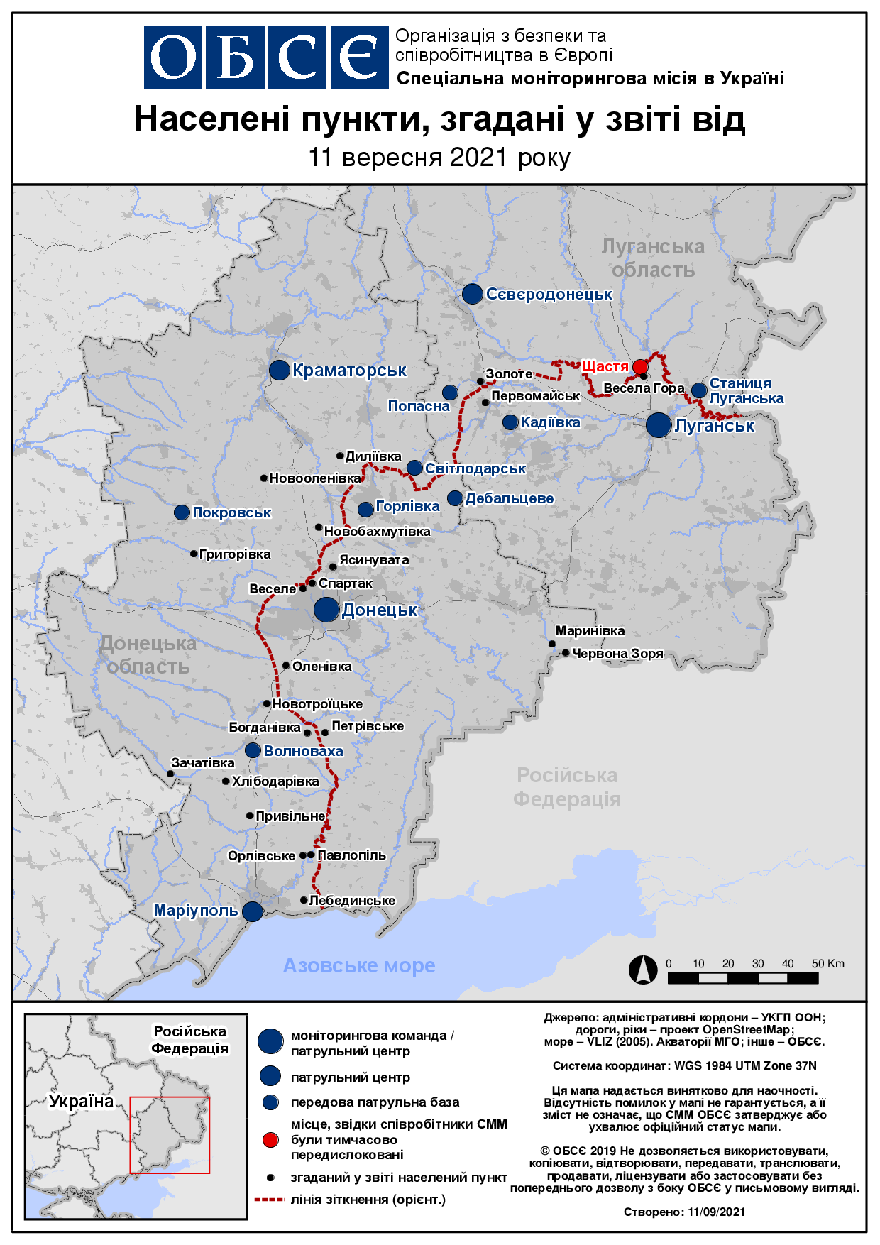 Щоденний звіт № 213/2021, опублікований Спеціальною моніторинговою місією ОБСЄ в Україні (СММ) 11 вересня 2021 року