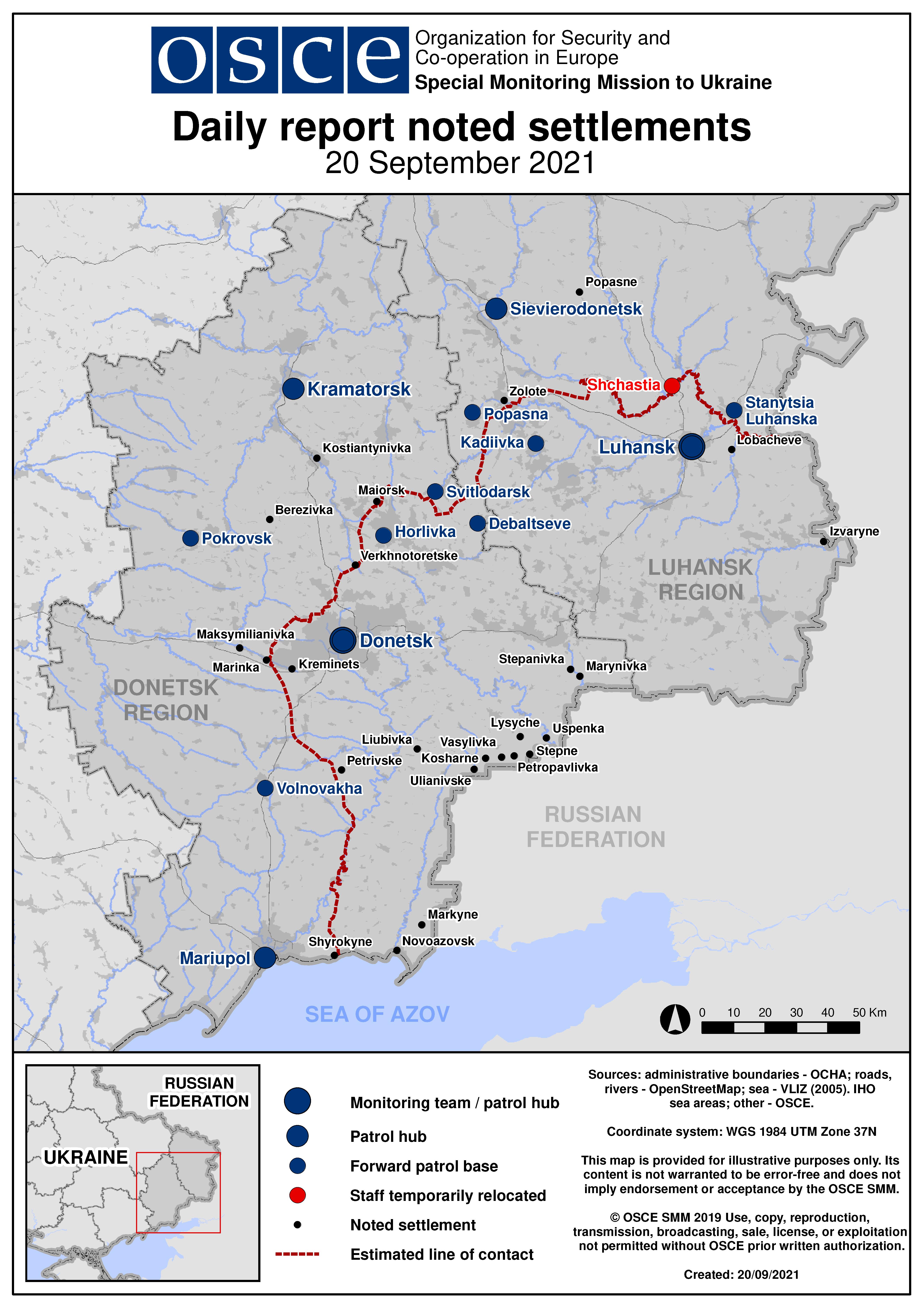 - 18 вересня у непідконтрольному урядові Луганську Місія тимчасово евакуювала персонал зі своїх приміщень після повідомлення про мінування, яке виявилося хибним.