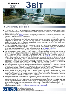 Цей звіт містить загальний огляд діяльності Спеціальної моніторингової місії в Україні, останні новини та події станом на 18 жовтня 2021 року.