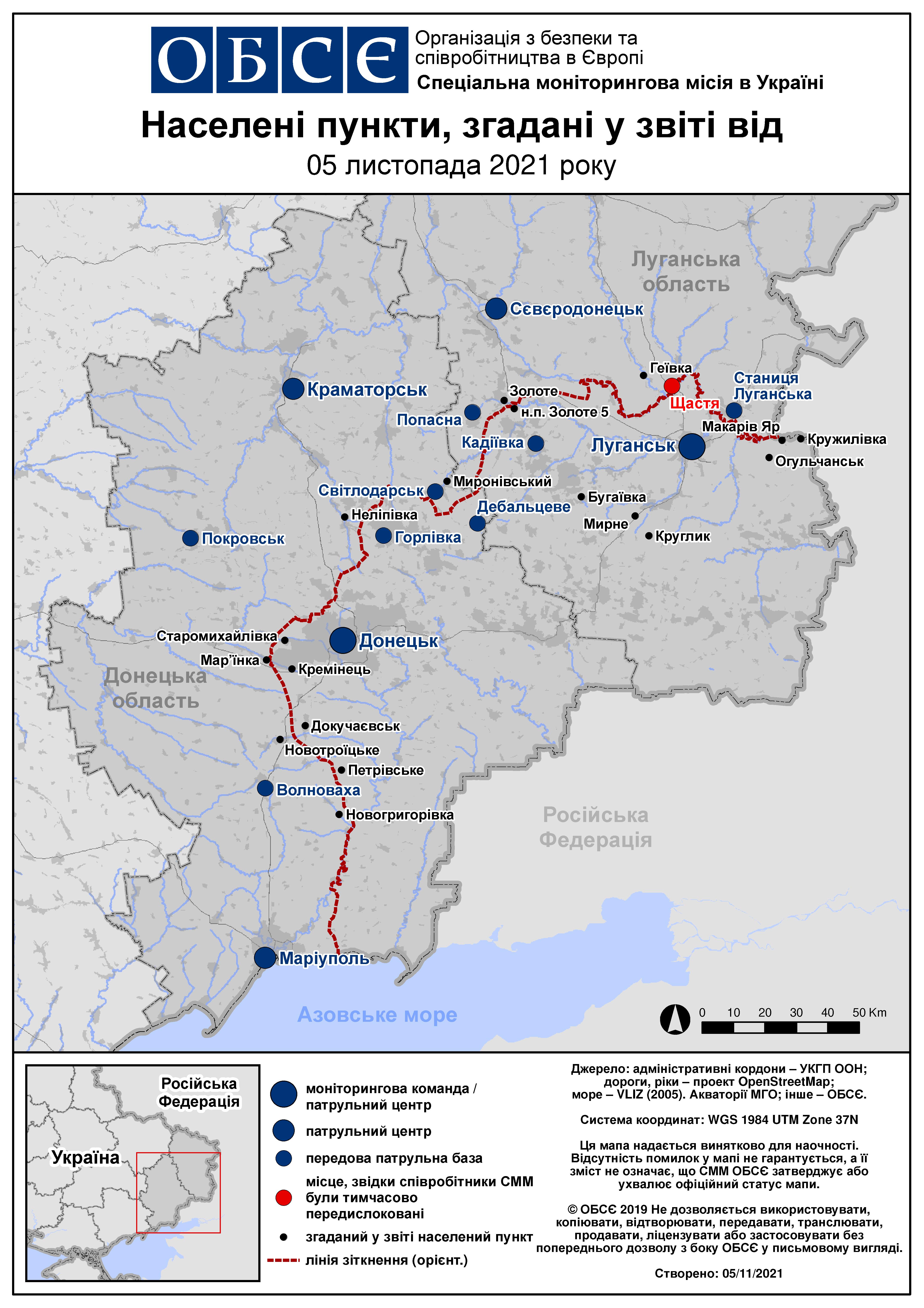 Щоденний звіт № 260/2021, опублікований Спеціальною моніторинговою місією ОБСЄ в Україні (СММ) 5 листопада 2021 року
