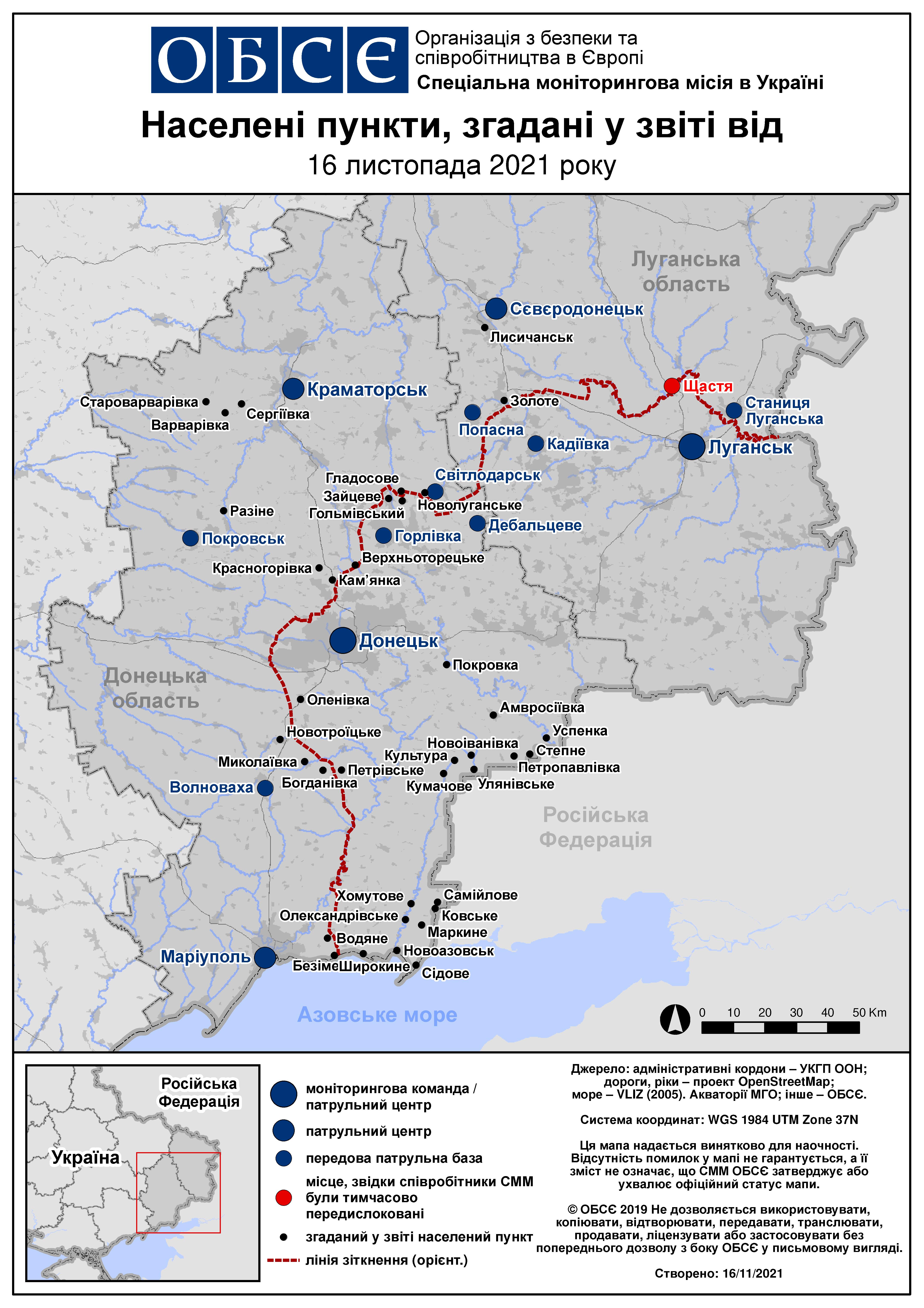Щоденний звіт № 269/2021, опублікований Спеціальною моніторинговою місією ОБСЄ в Україні (СММ) 16 листопада 2021 року