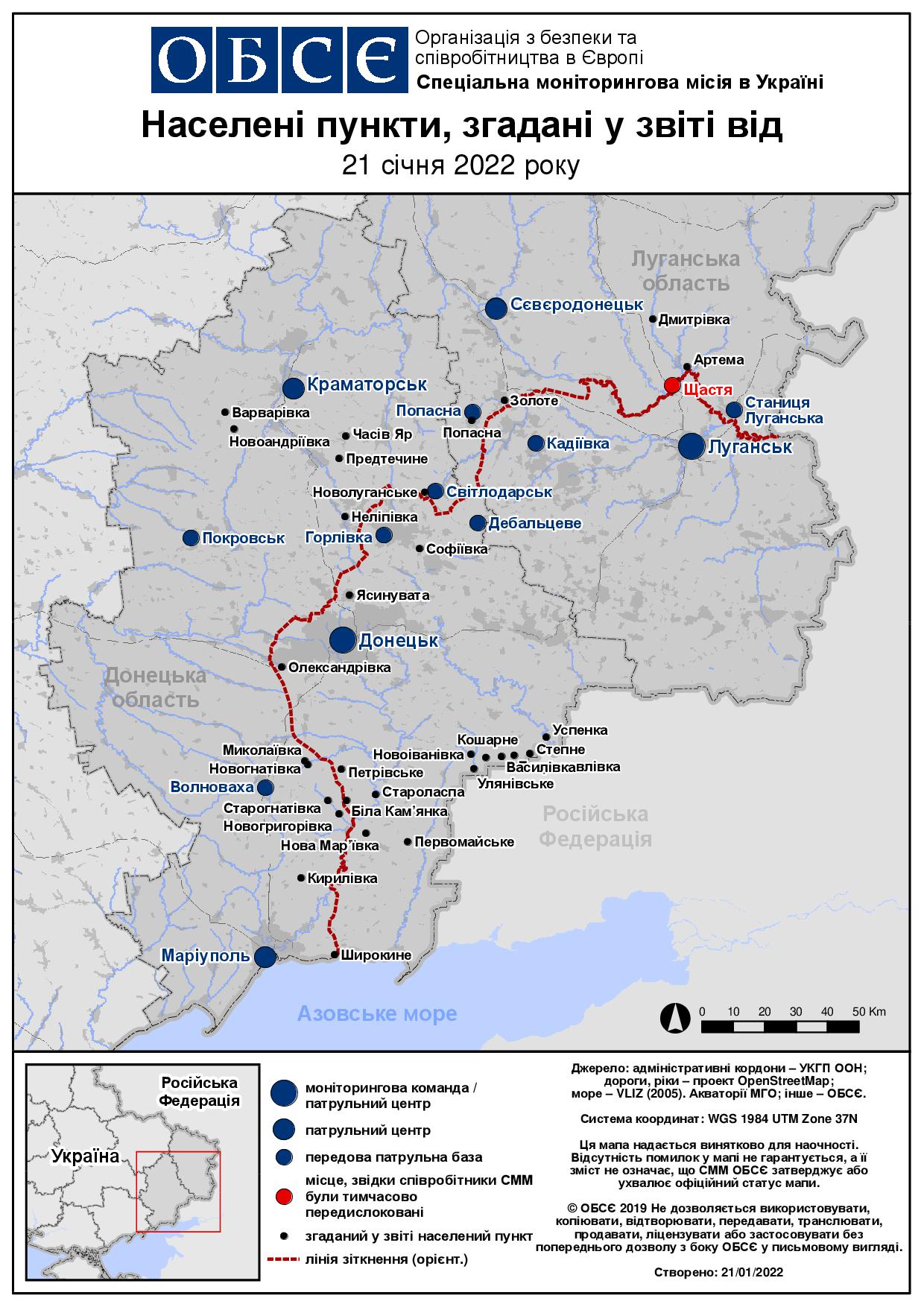 Щоденний звіт № 14/2022, опублікований Спеціальною моніторинговою місією ОБСЄ в Україні (СММ) 21 січня 2022 року