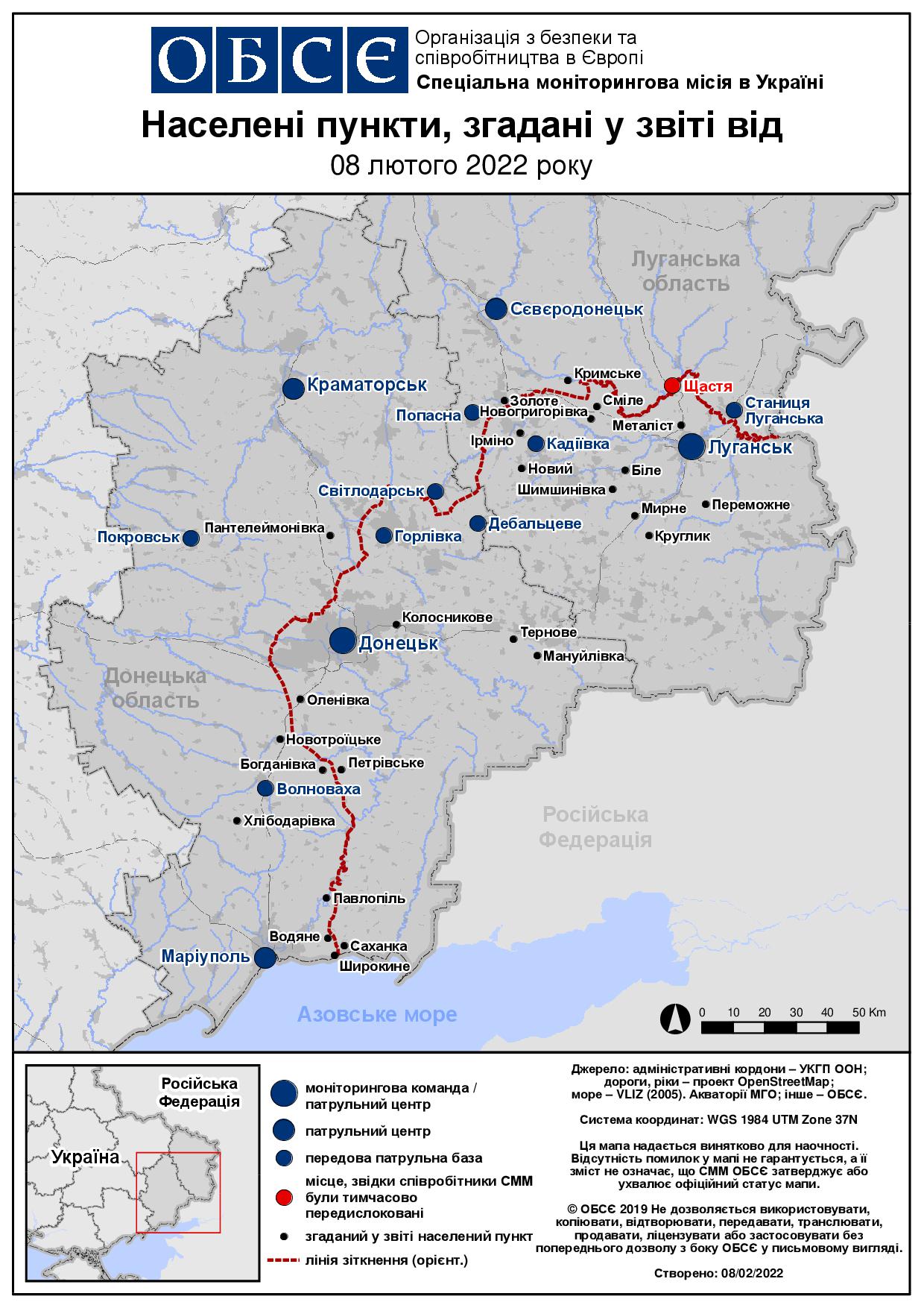 Щоденний звіт № 29/2022, опублікований Спеціальною моніторинговою місією ОБСЄ в Україні (СММ) 8 лютого 2022 року
