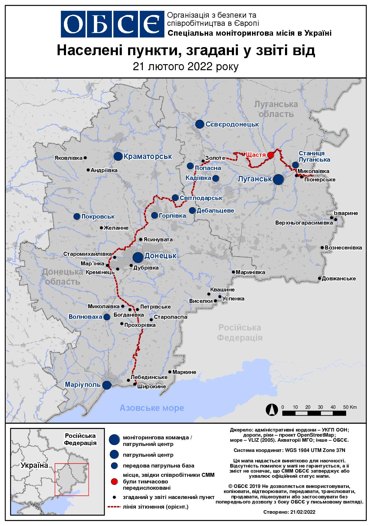 Щоденний звіт № 40/2022, опублікований Спеціальною моніторинговою місією ОБСЄ в Україні (СММ) 21 лютого 2022 року