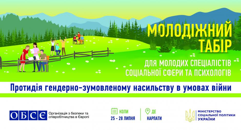 Програма підтримки ОБСЄ для України оголошує набір молодих спеціалістів – соціальних працівників та психологів, які працюють у загальних та спеціалізованих службах для постраждалих осіб від домашнього насильства в Україні, для участі у Молодіжному таборі «Протидія гендерно-зумовленому насильству в умовах війни».