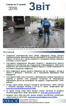 Цей звіт містить загальний огляд діяльності Спеціальної Моніторингової Місії в Україні, останні новини та події станом на 11 травня 2016 року.
