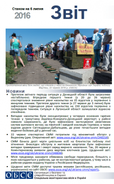 Цей звіт містить загальний огляд діяльності Спеціальної Моніторингової Місії в Україні, останні новини та події станом на 6 липня 2016 року.