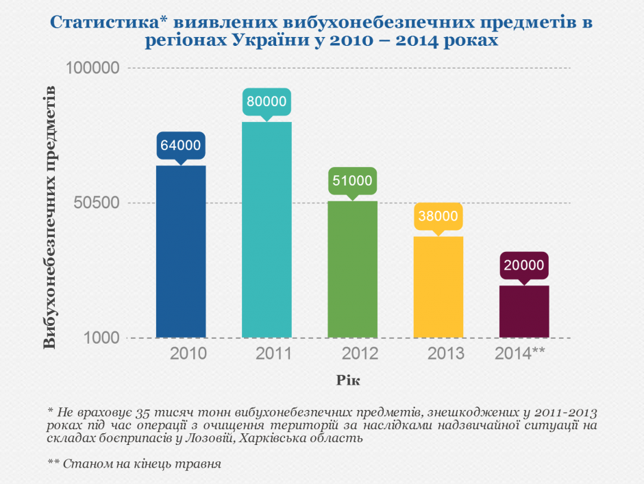 Статистика виявлених вибухонебезпечних предметів в регіонах України у 2010 – 2014 роках