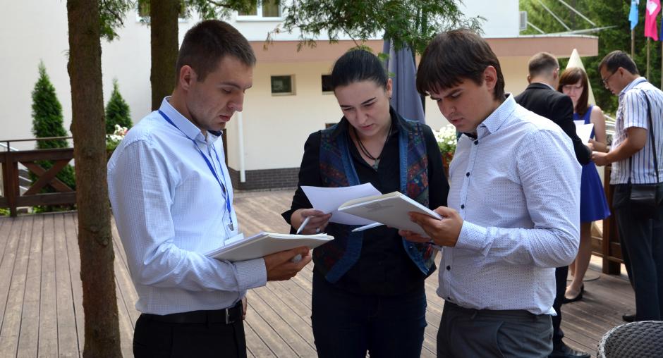 Учасники тренінгу працюють у малих групах над виробленням стратегії з адвокації, Київ, 14 липня 2015 р. (OSCE) Відкрити фото