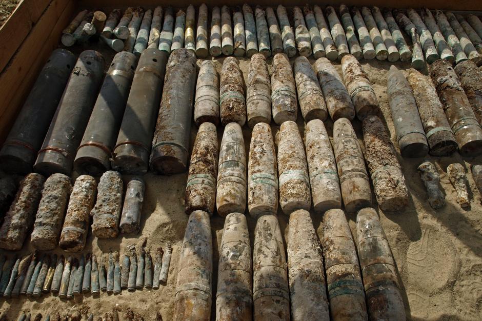Зразки вибухонебезпечних залишків минулих війн, знайдені в Інкерманських штольнях Севастополя, Крим, вересень 2009 р.