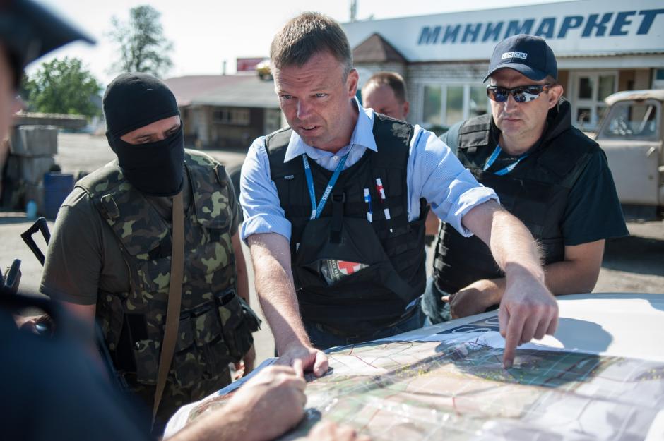Alexander Hug, Deputy Chief Monitor, negotiates with local interlocutors near the MH17 crash site, 5 August 2014.