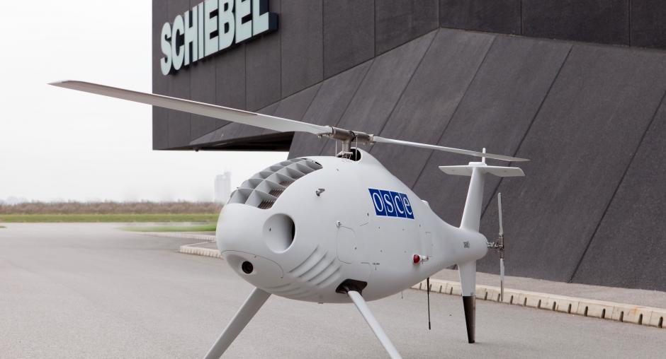 The UAVs, the Schiebel CAMCOPTER® S-100, are being provided, flown and maintained by an Austrian company Schiebel under contract to the OSCE and operated under the authority and direction of the SMM, with the Mission’s monitors in close attendance. The data collected is the property of the OSCE and for the Organization’s use only.