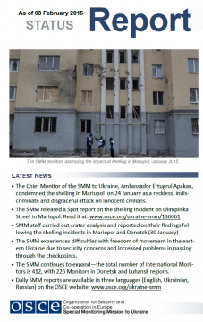 This report presents a general overview of the Special Monitoring Mission in Ukraine (SMM), its main activities and latest news as of 3 February 2015.