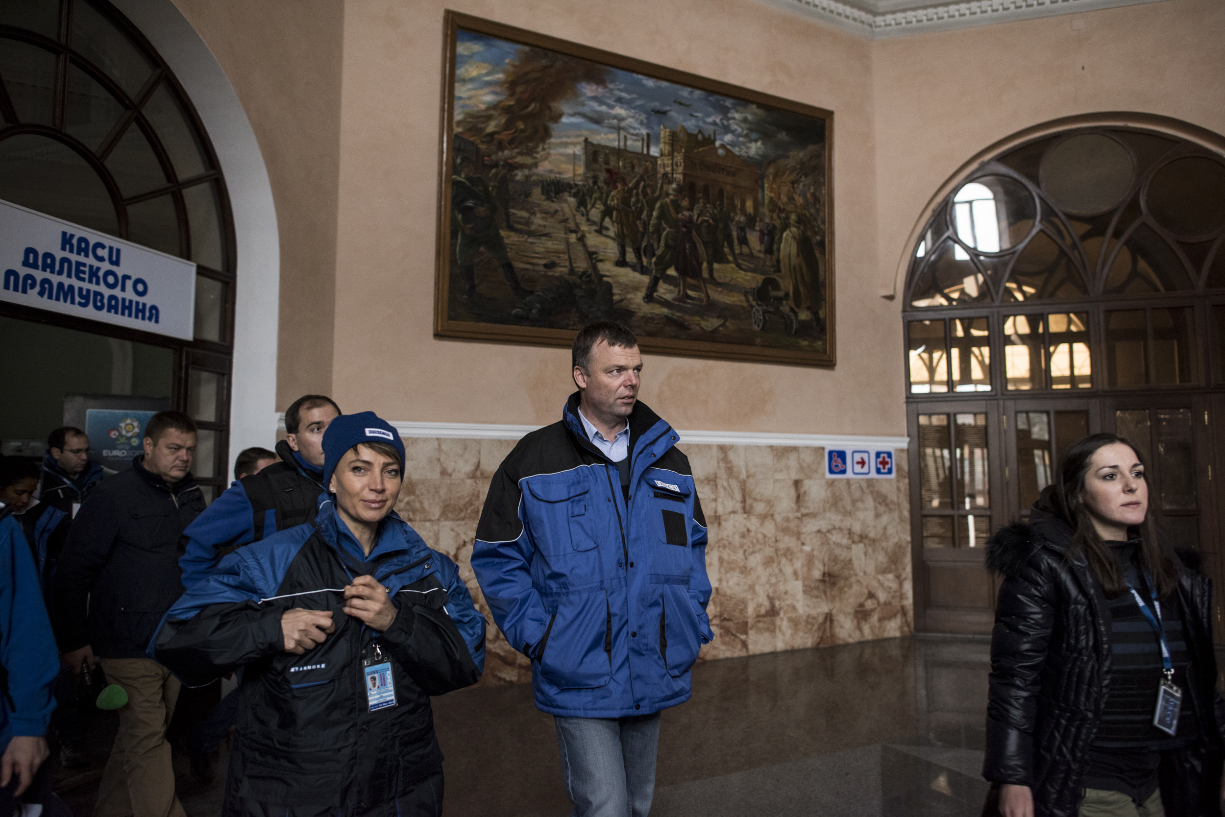 OSCE SMM Deputy Chief Monitor visiting Debaltseve railway station, 25 October 2015.