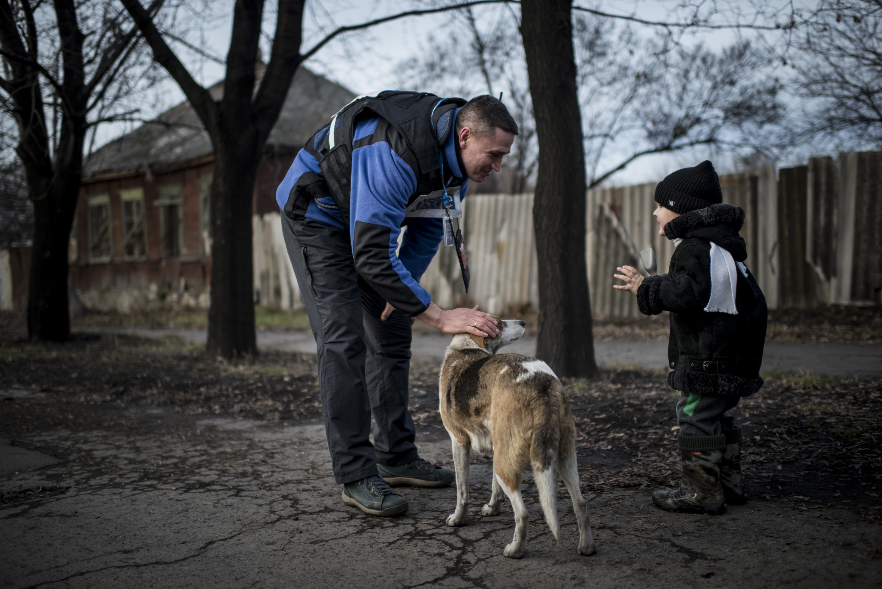 The SMM monitors conducting a foot patrol in Debaltseve, 10 December 2015.