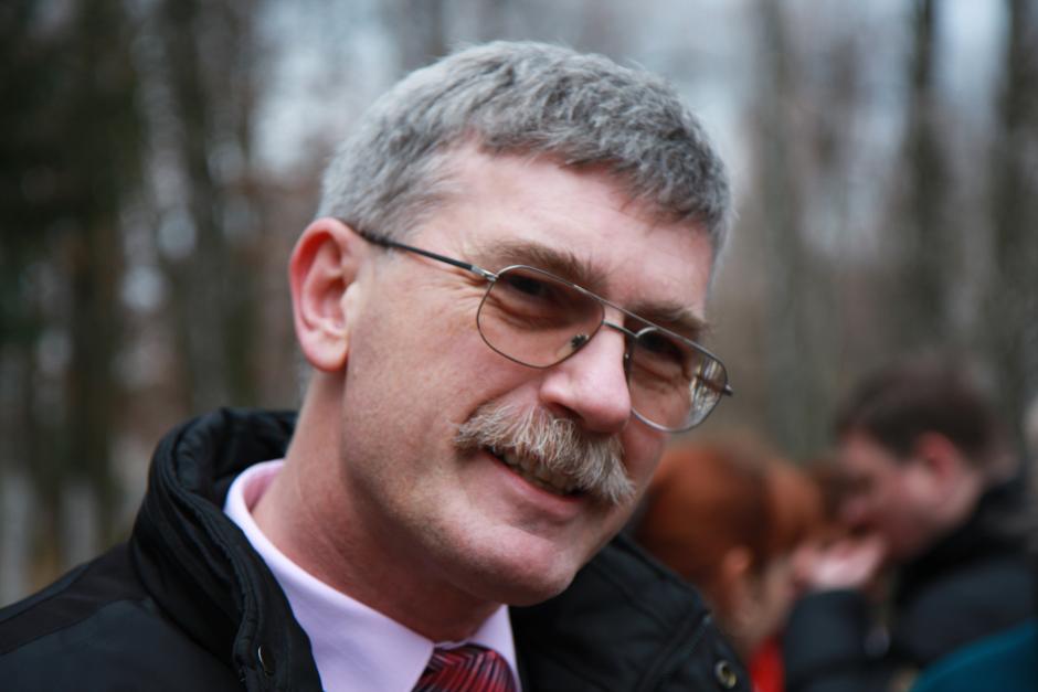 The OSCE Project Co-ordinator in Ukraine, Ambassador Lubomir Kopaj, speaks to journalists near Kalynivka on 18 November 2009.