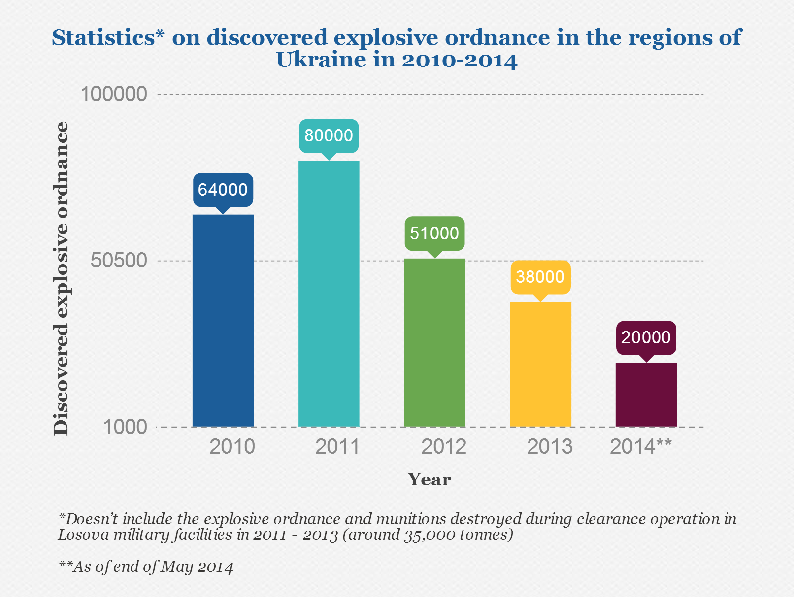 Statistics on discovered explosive ordnance in the regions of Ukraine in 2010-2014