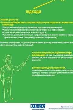 This poster has been developed and printed for educational purposes for border control personnel. It is being implemented with the support of the government of Finland as part of an ENVSEC/OSCE project on prevention of illegal cross-border transport of hazardous waste and other cross-border environmental crimes. Available in Russian and Ukrainian only. For print-quality file requests please refer to Tamara.Kutonova@osce.org.
