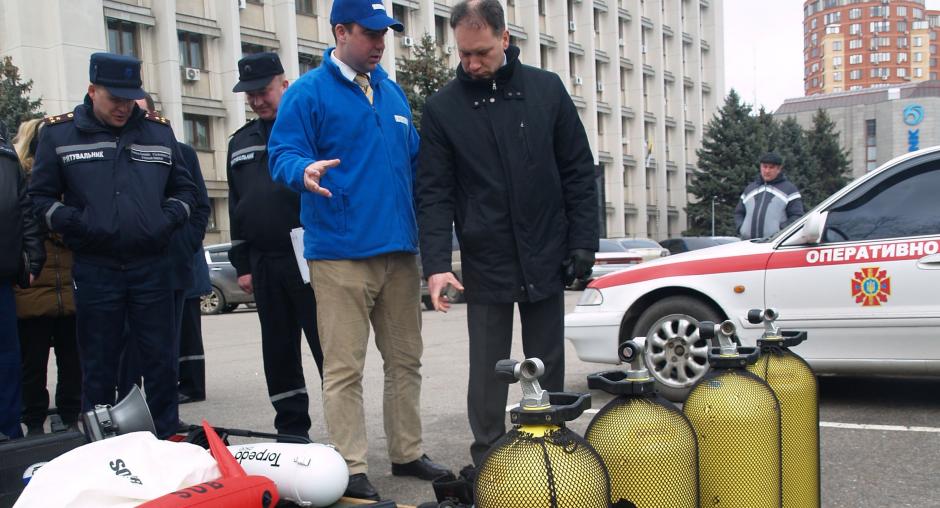 OSCE Project Co-ordinator in Ukraine donated to country’s State Emergency Service equipment for underwater survey and clearance operations at a ceremony in Odesa on Thursday, 19th of March 2015. Six special dive suits, four diver communication sets and two hydroacoustic stations will help Ukrainian humanitarian deminers better deal with threats posed to civilians by explosive ordnance in coastal waters, rivers and lakes.