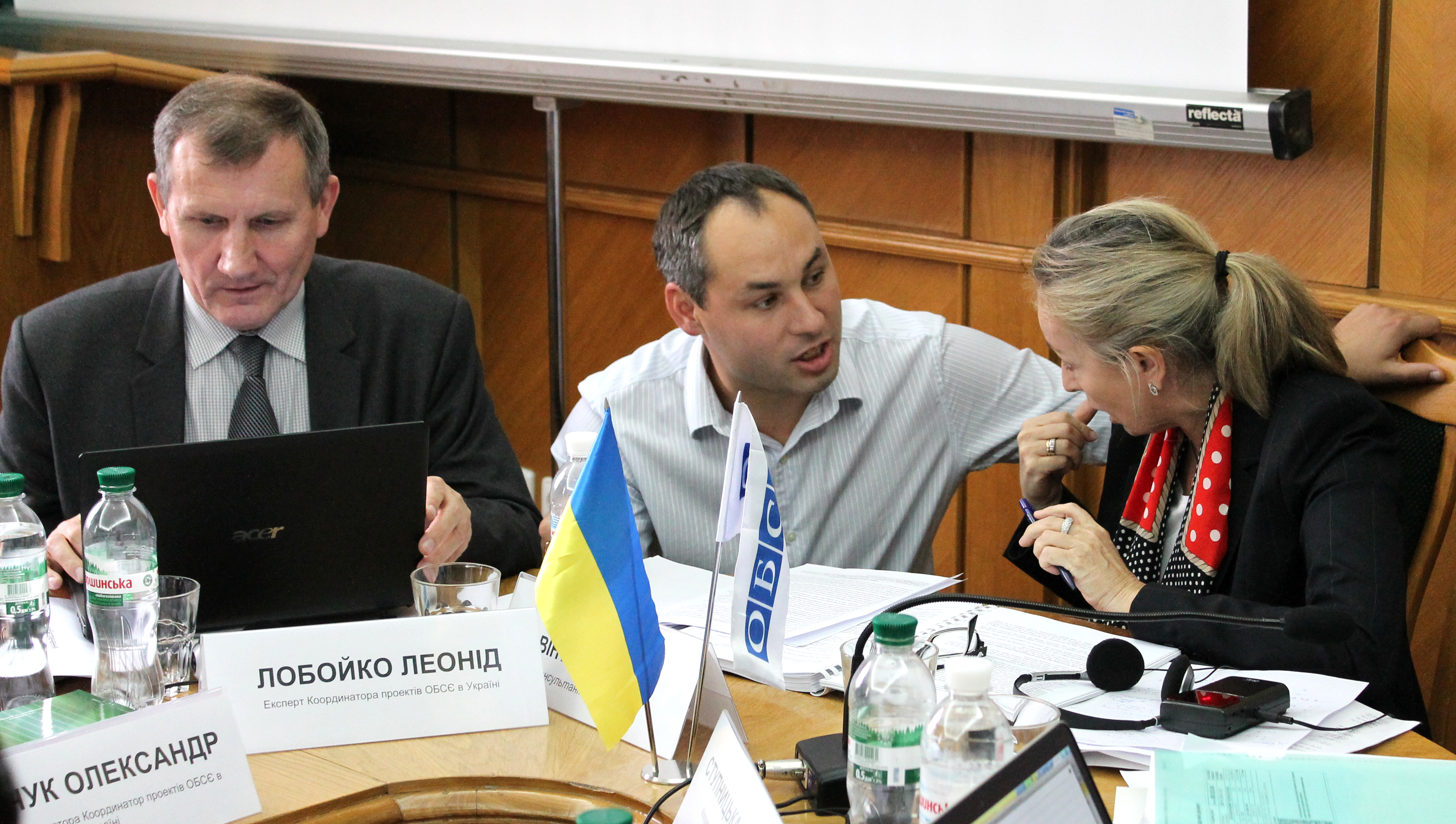 PCU expert Oleksandr Banchuk and Council of Europe consultant Lorena Bachmaier Winter discuss specifics of Ukrainian and European standards of criminal procedure, Lviv, 30 September 2015.