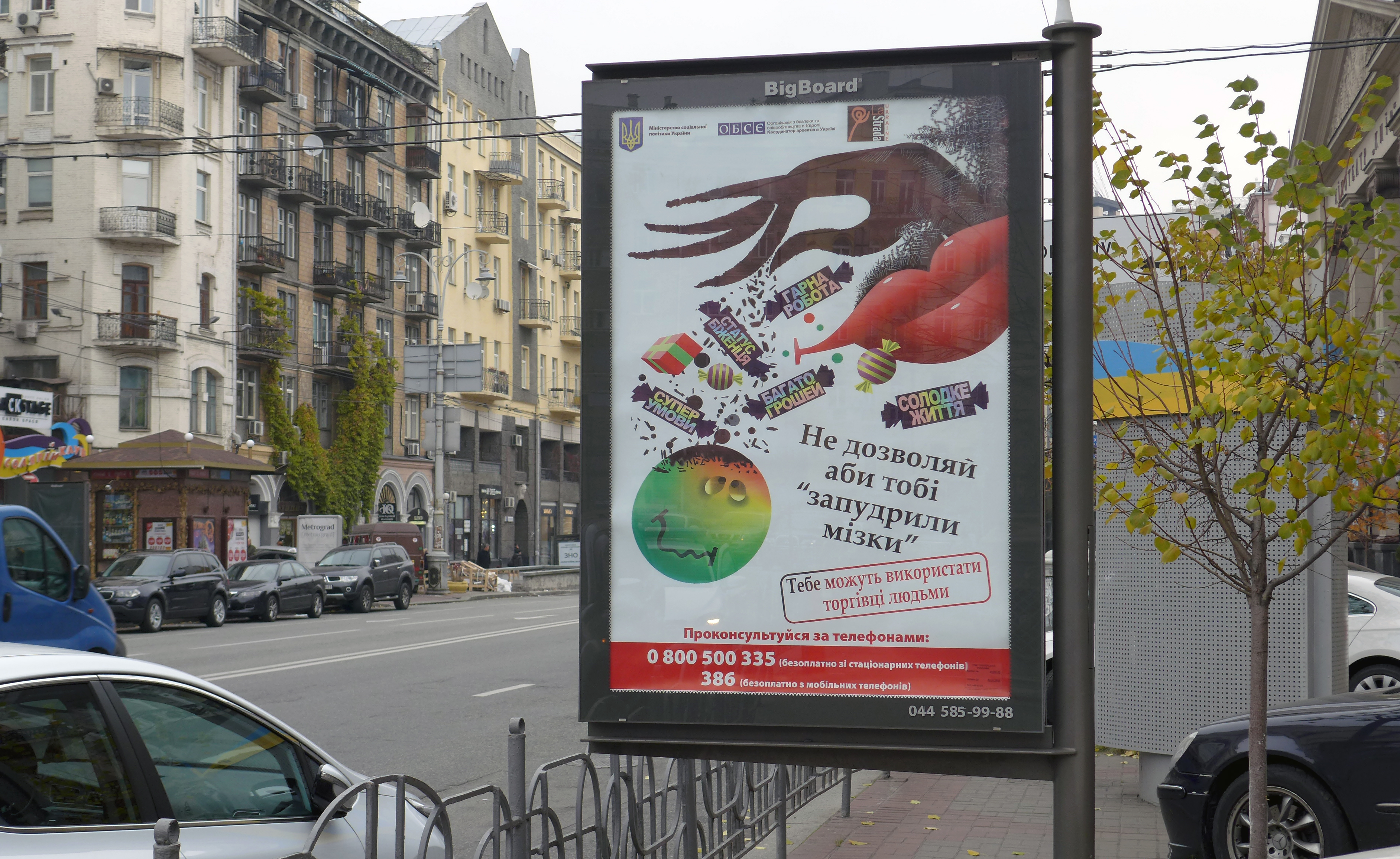 Poster at a street of Kyiv, prepared as part of a national anti-trafficking awareness-raising campaign and launched with the support of the OSCE Project Co-ordinator in Ukraine, Kyiv, 3 November 2015.