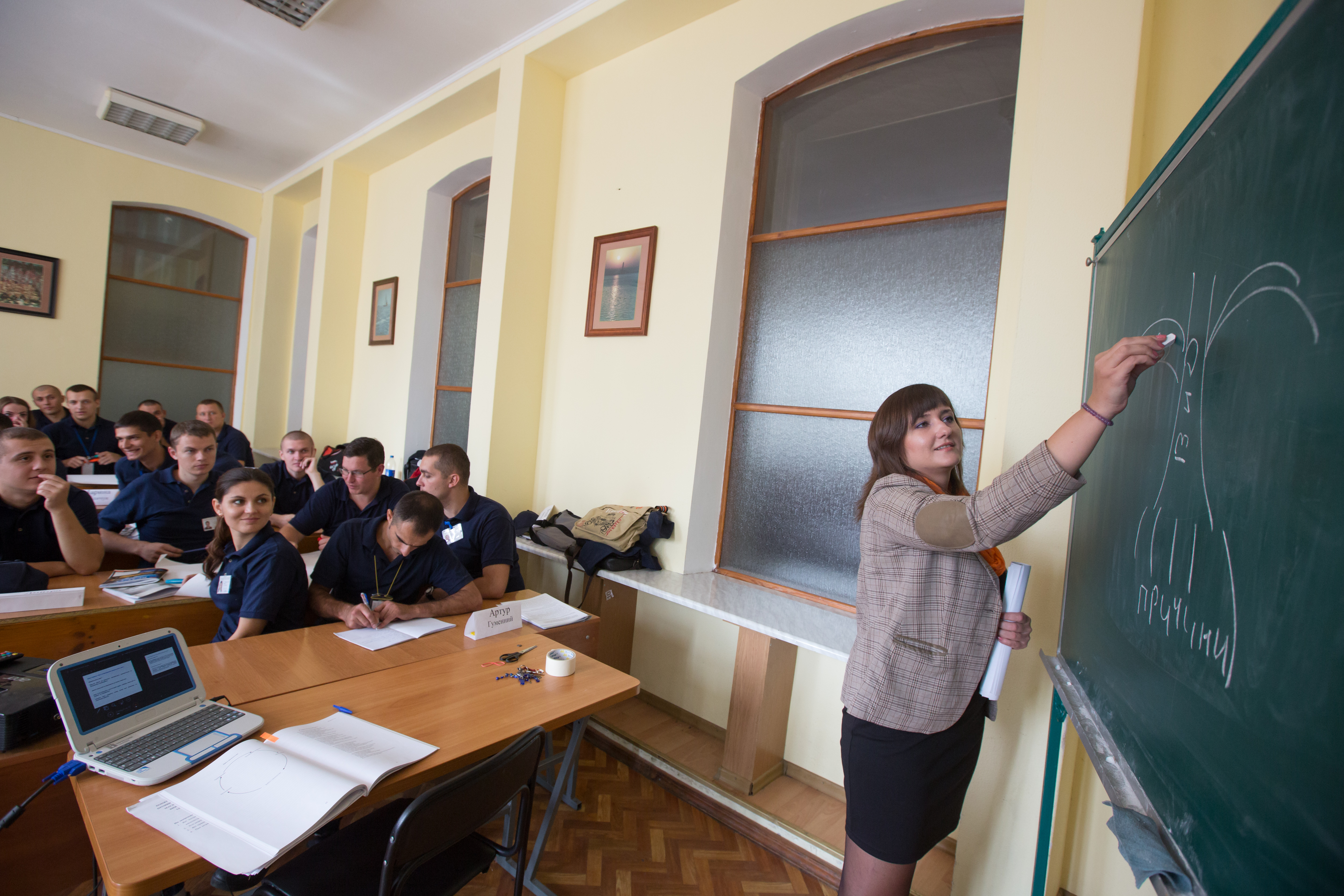 Trainer Oksana Kovalyova explains roots of domestic violence in a family for future police cadets at an OSCE-supported training course, Odesa, 29 September 2015.