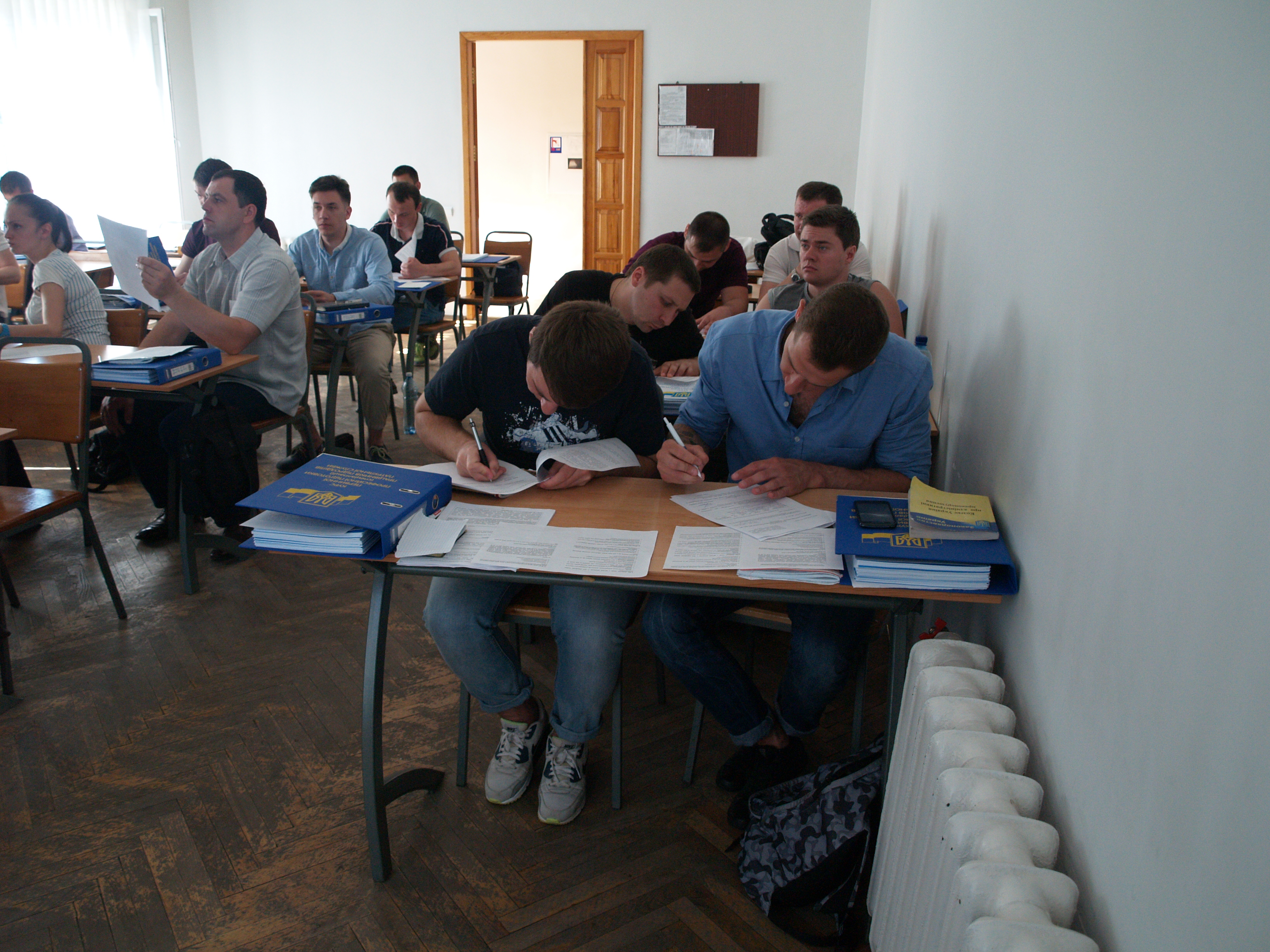 Police cadets sat a test during a training course in Kyiv, 3 July 2015.