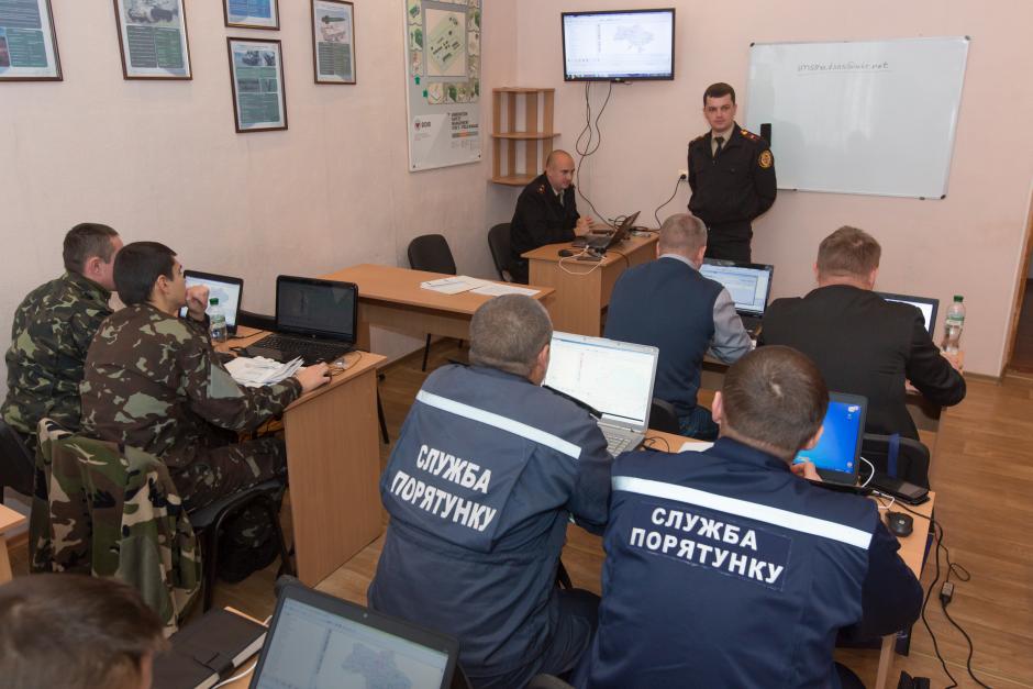 Ukrainian deminers being trained on how to use an information management system for mine action organized by the OSCE Project Co-ordinator in Ukraine and supported by the Geneva International Center for Humanitarian Demining, Merefa, 4 December 2015.