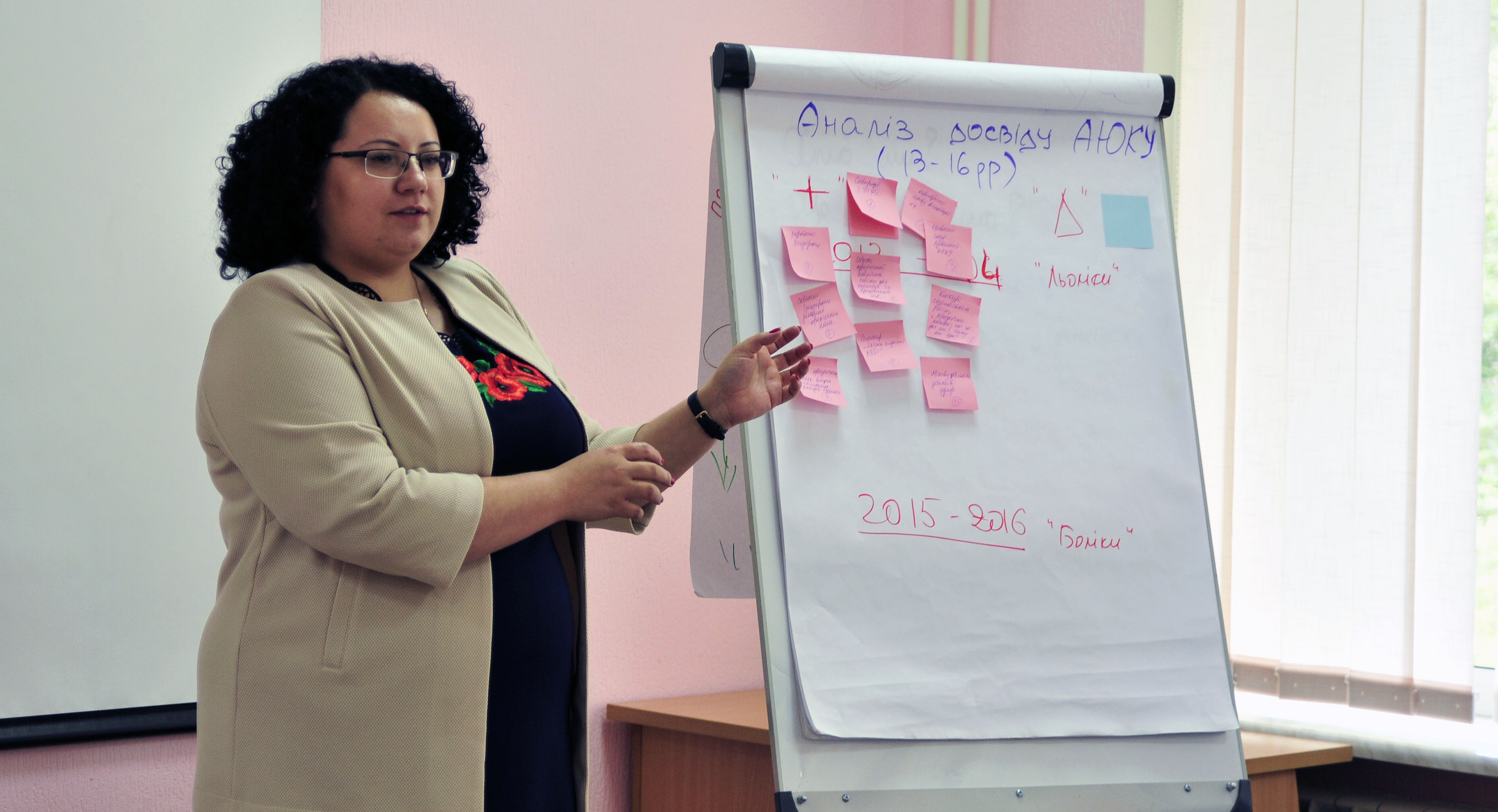 Yuliia Savelova, board member of the Association of Legal Clinics of Ukraine, presenting association's 2013-2015 achievements, Bucha, 31 May 2016.
