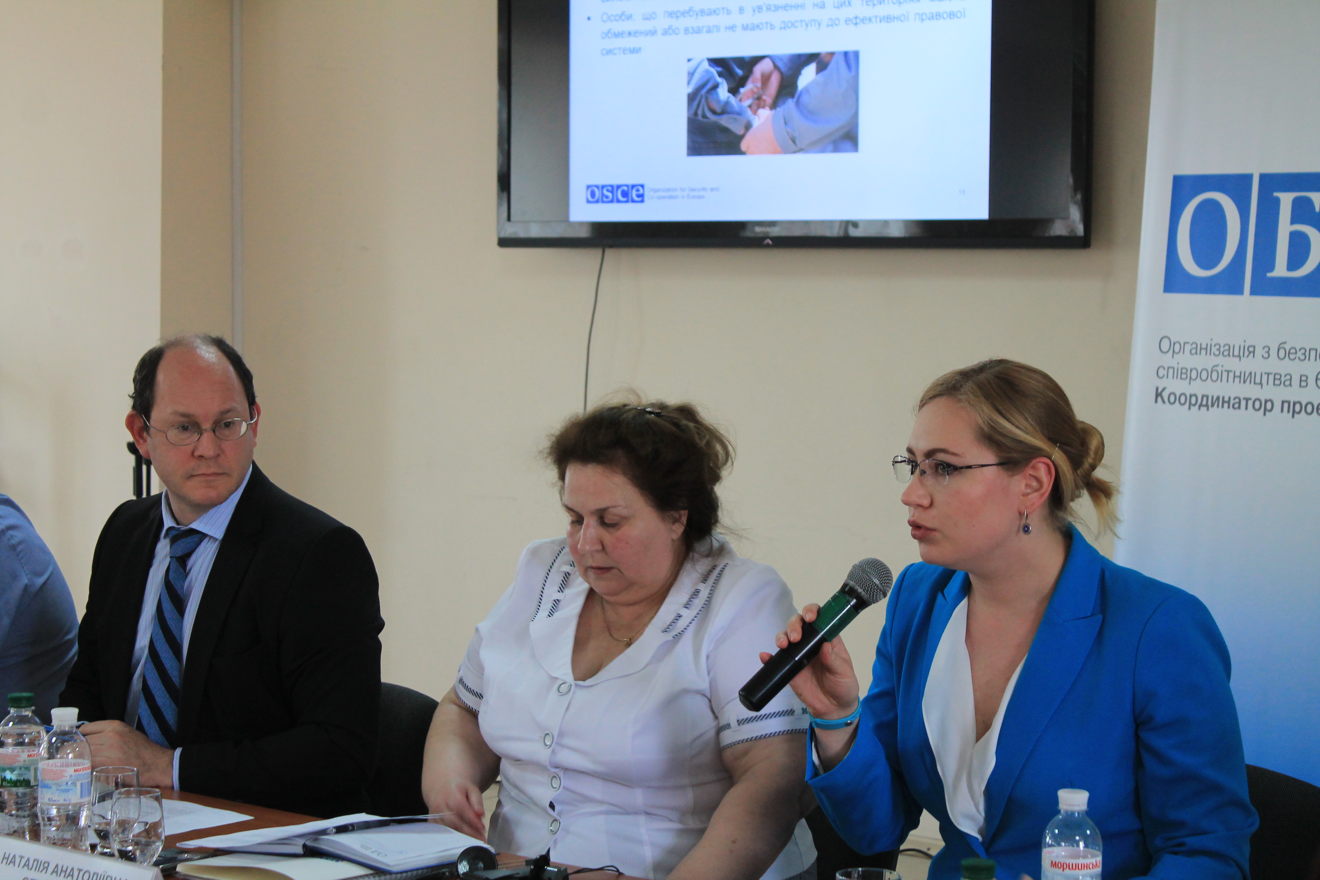 Seminar participants discussing access to justice challenges in relocated administrative courts in eastern Ukraine, Kramatorsk, 7 June 2016.