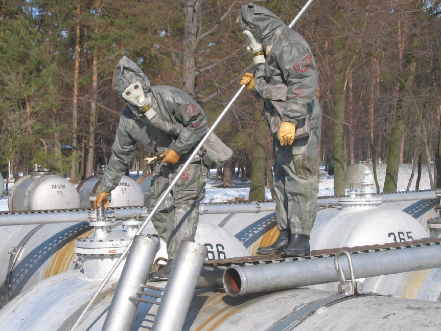 Inspection of a melange storage facility in Ukraine, July 2005. The country has close to 17,000 tons of the highly explosive missile fuel component once used in the former USSR.