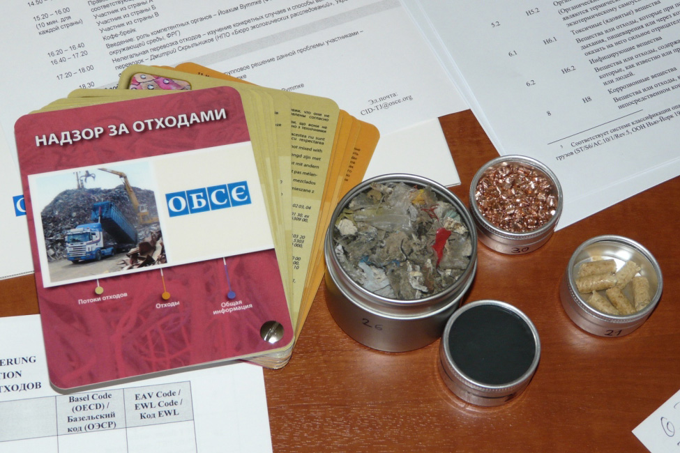 Waste Watch cards and samples of hazardous waste used during a training workshop in June 2010.
