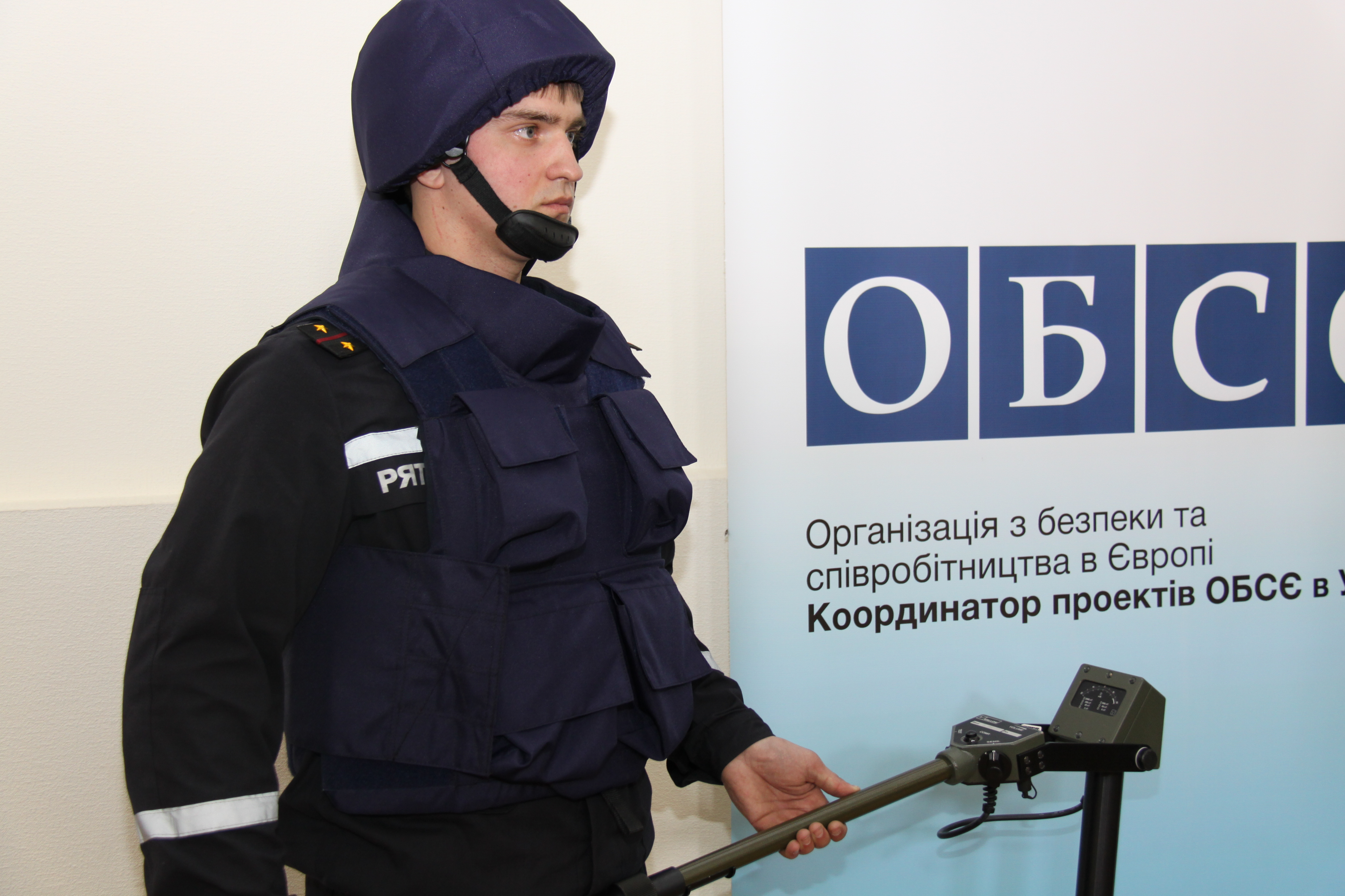A pyrotechnic specialist from Ukraine's Emergency Situations Ministry at a ceremony for the donation of personal protective equipment by the OSCE Project Co-ordinator in Ukraine, Kyiv, 18 March 2011.