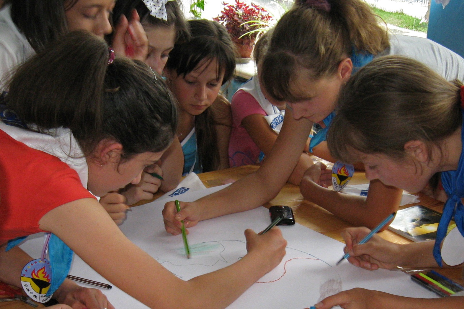 Children drawing their impressions of the Easter Island story, which serves as an example and warning of the over-exploitation of natural resources, 28 June 2012.