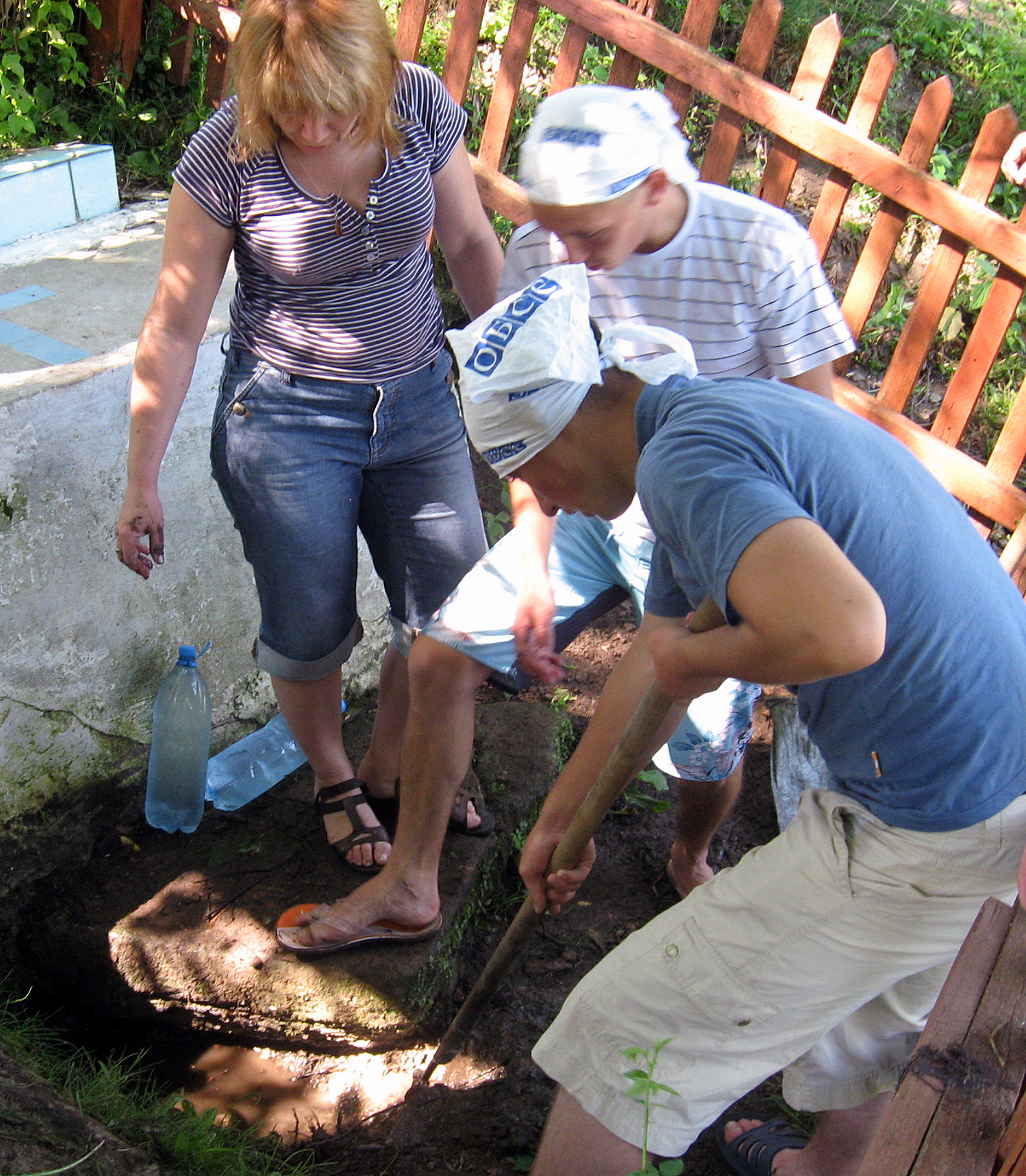 Young activists in the process of cleaning a stream during an exercise on water sustainability during summer camp supported by OSCE Project Co-ordinator in Ukraine in Khmelnystkyi region, 30 June 2012.