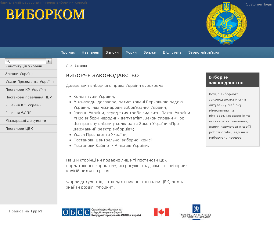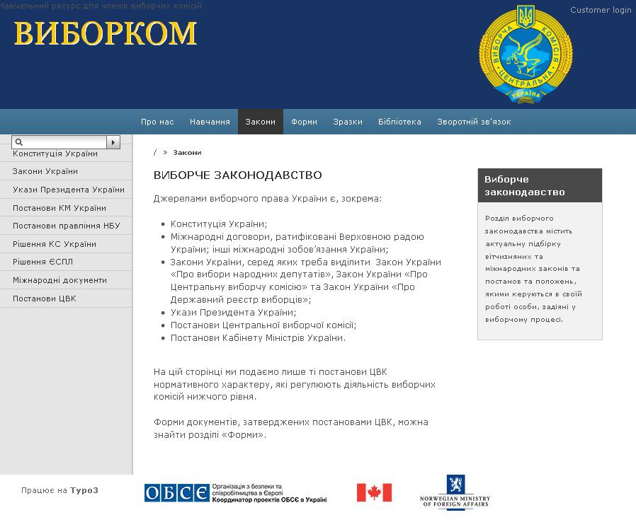 This screen shot shots a web portal, created with support from the OSCE Project Co-ordinator in Ukraine, that will be used to train election officials.
