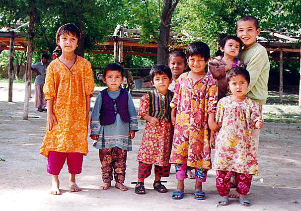 Children in Uzbekistan are pleased to see visitors in their home country, summer 2000.