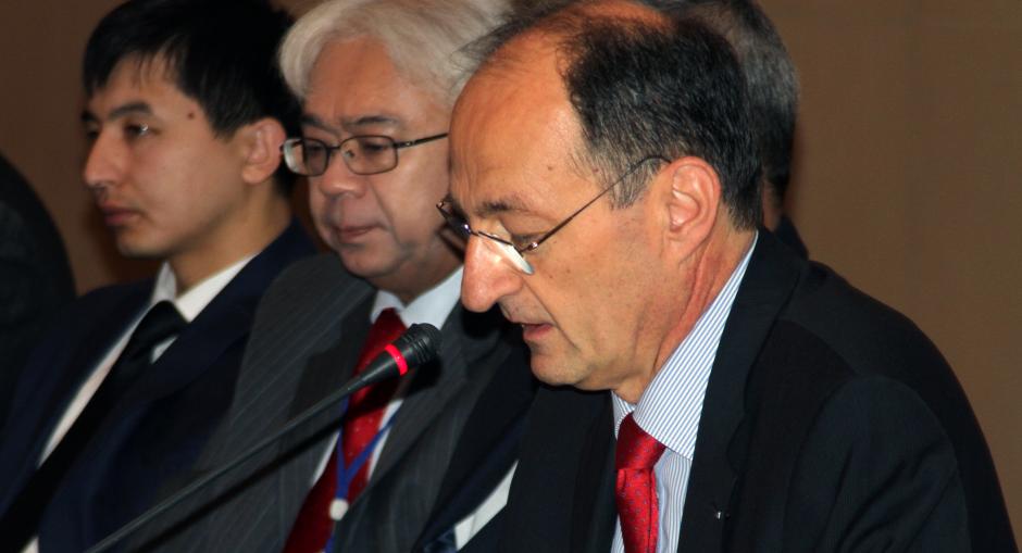 Ambassador Gyorgy Szabo, OSCE Project Co-ordinator in Uzbekistan, delivering his opening remarks during an OSCE-supported seminar with a focus on criminal justice responses to terrorism, Tashkent, 2 December 2015.