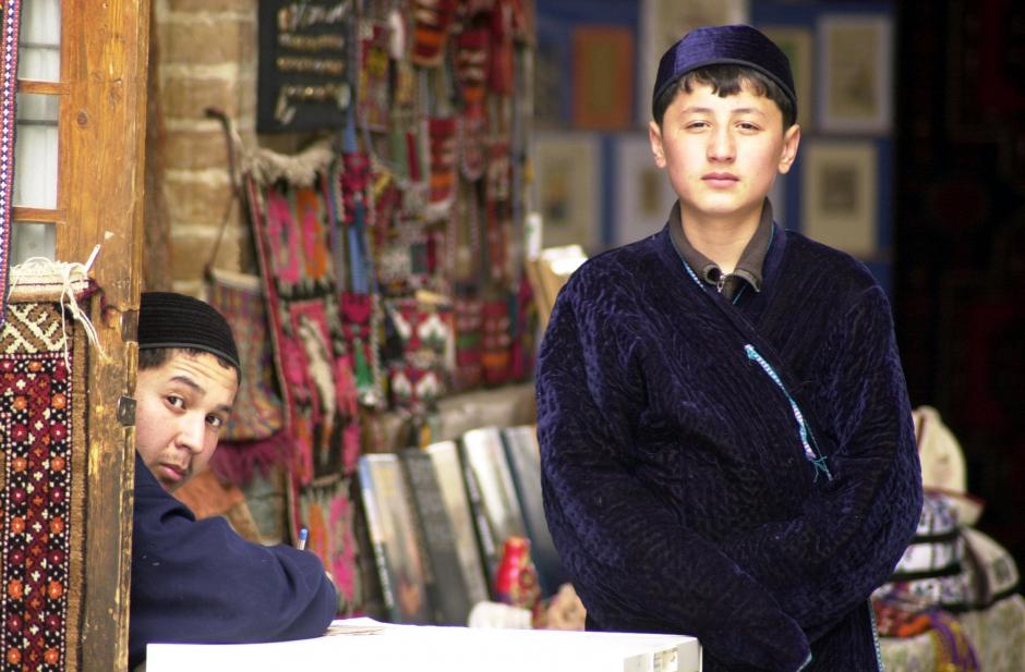 Young Uzbeks in the old town of Bukhara, one of Uzbekistan's most famous towns.