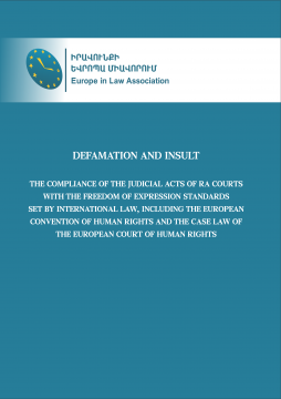 The publication prepared by the Europe in Law Association NGO with the support of the OSCE Office in Yerevan analyses the compliance of the judicial acts of Armenian courts with the freedom of expression standards set by international law, including the European Convention of Human Rights and the case law of the European Court of Human Rights.