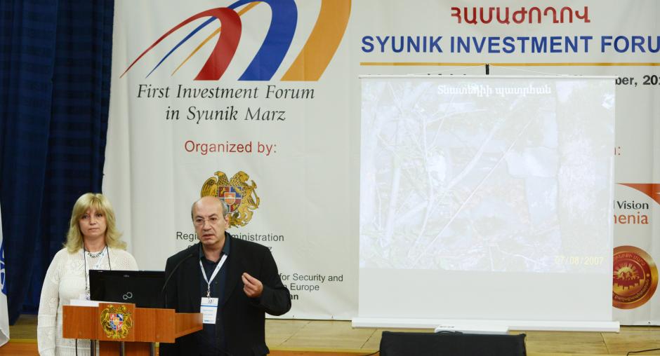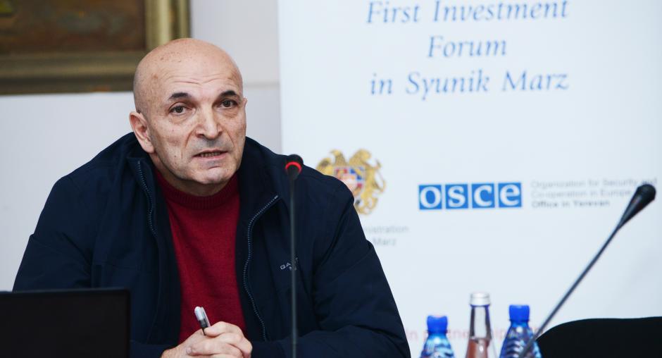 The forum gathered an unprecedented 172 representatives from central and local government and private businesses, including Vice Prime Minister Armen Gevorgyan and heads of diplomatic missions to Armenia. Discussions focused on agricultural production, food processing and tourism opportunities. Felix Kumi-Ampofo, an OSCE expert introduced economic development modelling as a tool for promoting investment to participants.