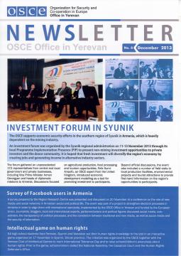 The newsletter covers the OSCE Office in Yerevan activities for the period of 1 July - 31 December 2013.