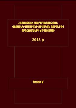 The compilation includes 54 decisions made by the Criminal Chamber of the Cassation Court of Armenia in the course of 2013. It is the 5th book of a series. The Cassation Court of Armenia acts to guarantee uniformity in the application of the law and ensure the consistency of the courts’ interpretations of legal acts. It is designed to serve as a reference tool for judges and lawyers.