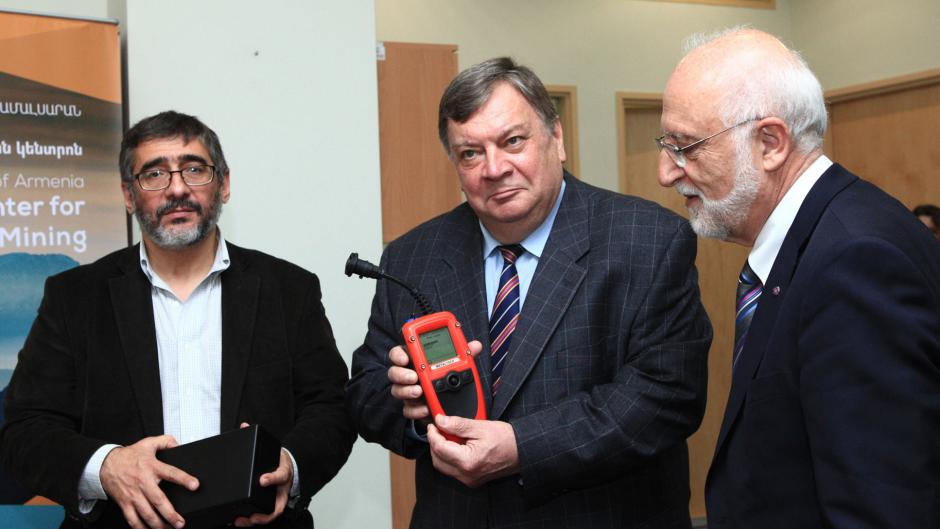 The Head of the OSCE Office in Yerevan, Ambassador Andrey Sorokin, donated mobile toxic pollution testing equipment and supplies to the American University of Armenia (AUA) Center for Responsible Mining, 21 May 2015.